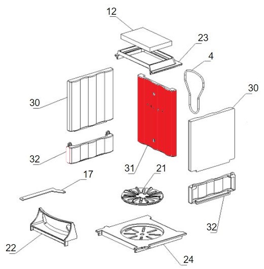 - płyta żeliwna, płyta komory spalania