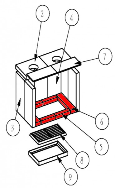 oryginał cegła podłogowa zestwa A do piec kominkowy Eurotherm Rubin