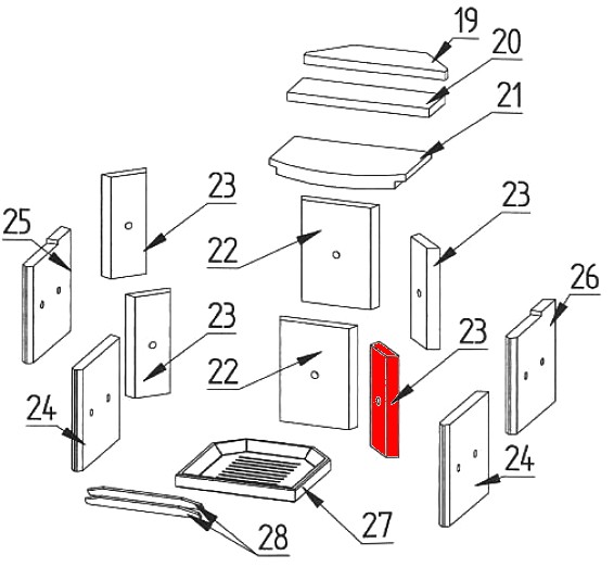 - cegła komory spalania, cegła komory paleniskowej
