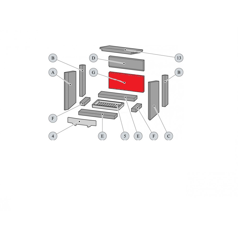 oryginał cegła tylnej ściany na dole do piec kominkowy Haas-Sohn Bali 296.17