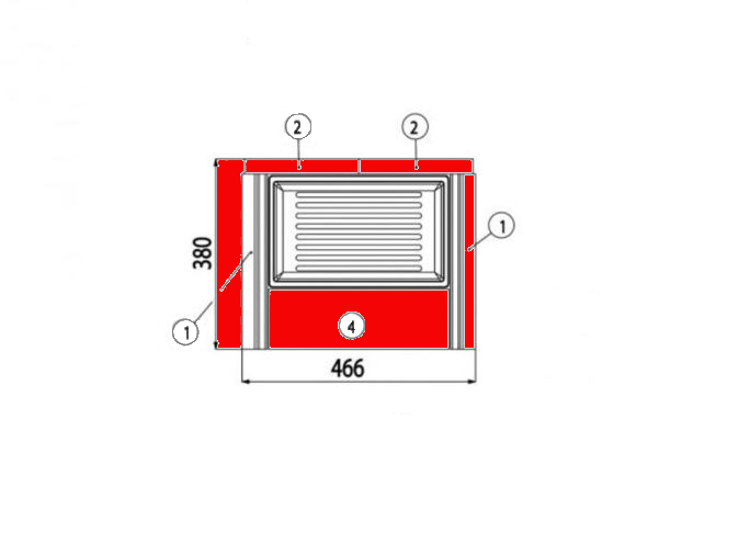 - Ceglana ściana tylna lewa (350 x 228 x 30 mm), cegła tylnej ściany prawa (350 x 228 x 30 mm)