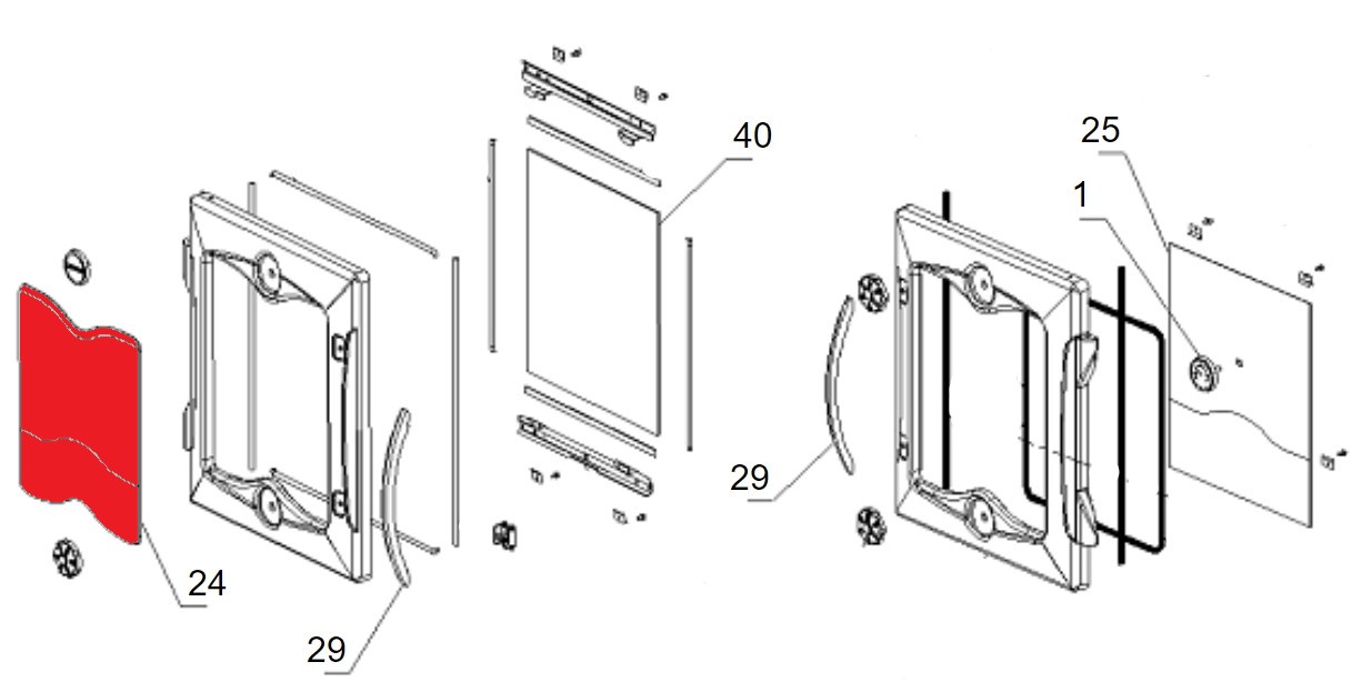 - szkło drzwi, wziernik