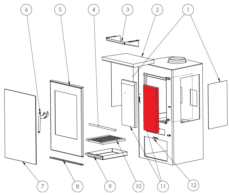 oryginał cegła tylnej ściany z prawej strony do piec kominkowy Panadero Condor