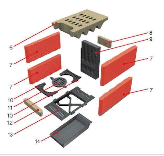 - Wykładzina paleniska, cegły komory spalania