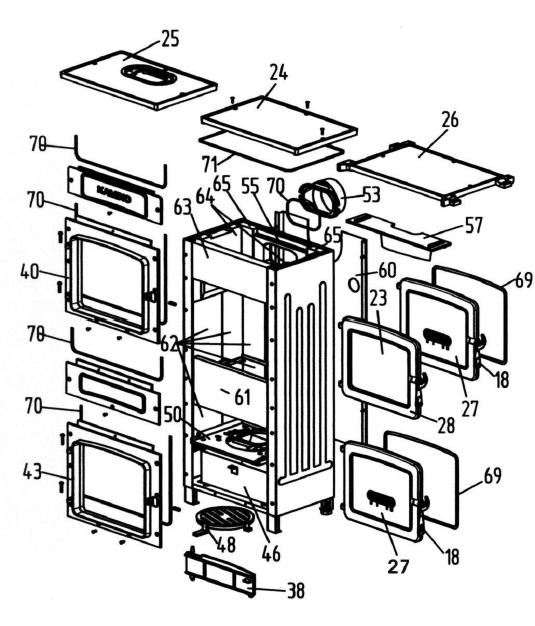 Eigenschaften "Wamsler WO 109-8 F drzwi komory paleniskowej A"