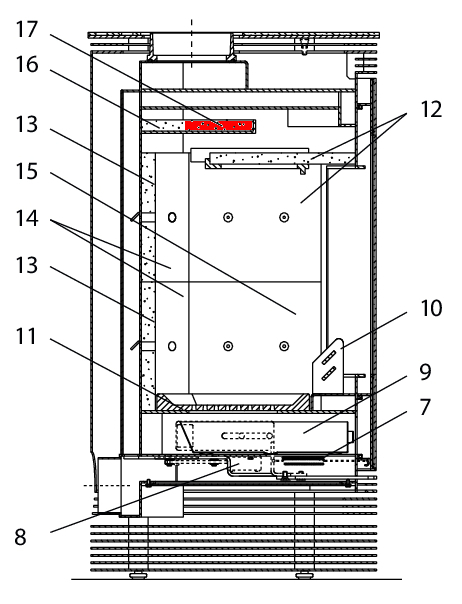 oryginał moduł zmiany kierunku ciągu na górze z przodu do piec kominkowy Wodtke KK 55